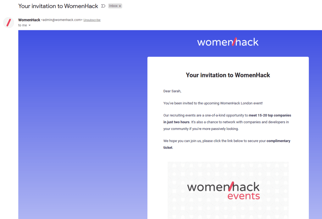 This week’s misdirected mail, has irked me somewhat. The title of the organization is WomenHack and while after a bit of research (Google/LinkedIn) it appears to be a recruitment company, I am still irked. Why? Oh let me start!